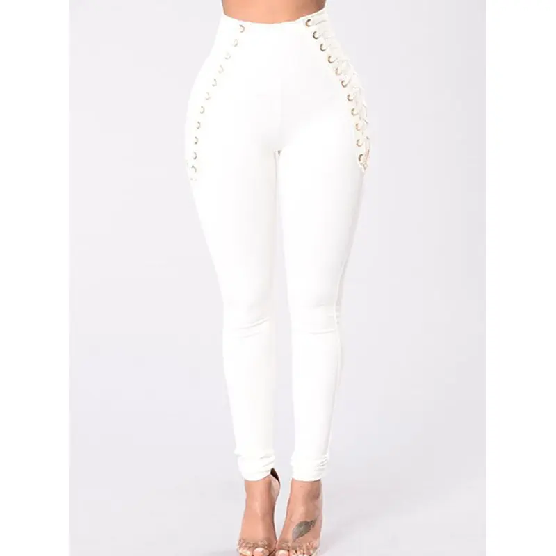 Buy Gothic Bandage Leggings Pants Women Black Punk Moto Sexy Club Slim Goth Girl Elastic Trousers High Street Pencil Pants Cheap Online