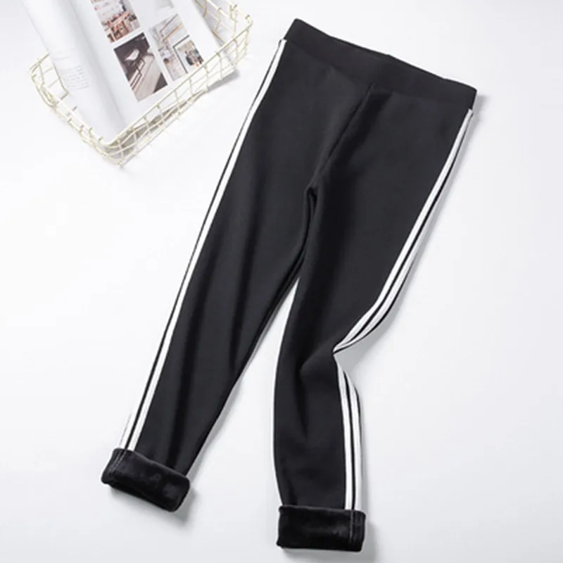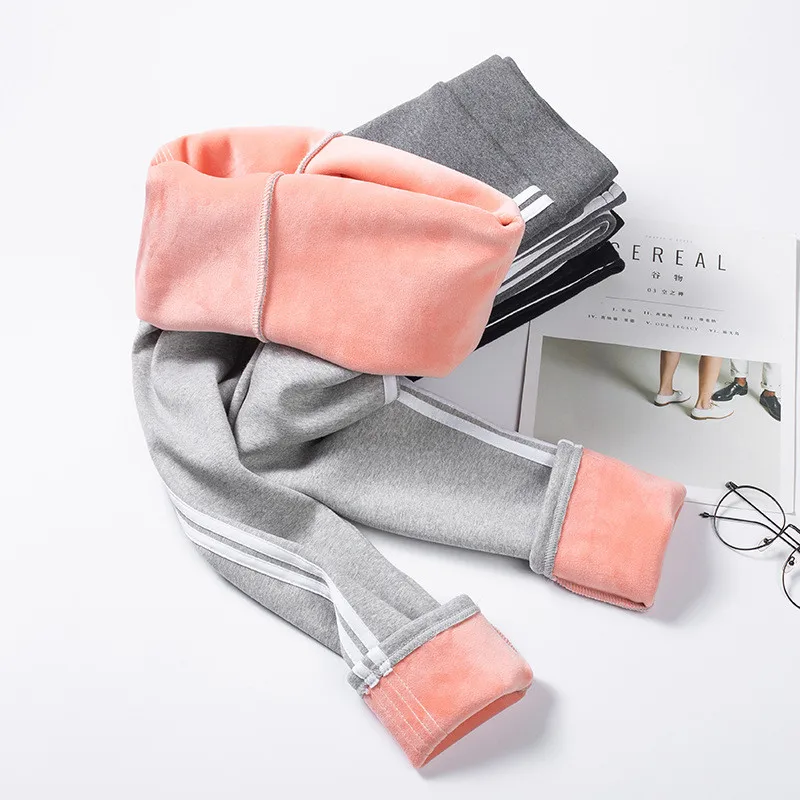 Buy New Winter Cotton Black Gray Leggings Women Plus Velvet Thick Wear resistant Elastic Vertical Bar Tight Warm Sports Pants Cheap Online